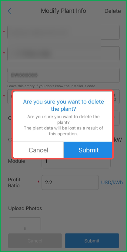 Delete the plant Crystal Xu 05 February 2026 02:21 Step 1: Click this icon on the Plants page. Step 2: Submit the info of deleting the plant. Comments 0 comments Please sign in to leave a comment.