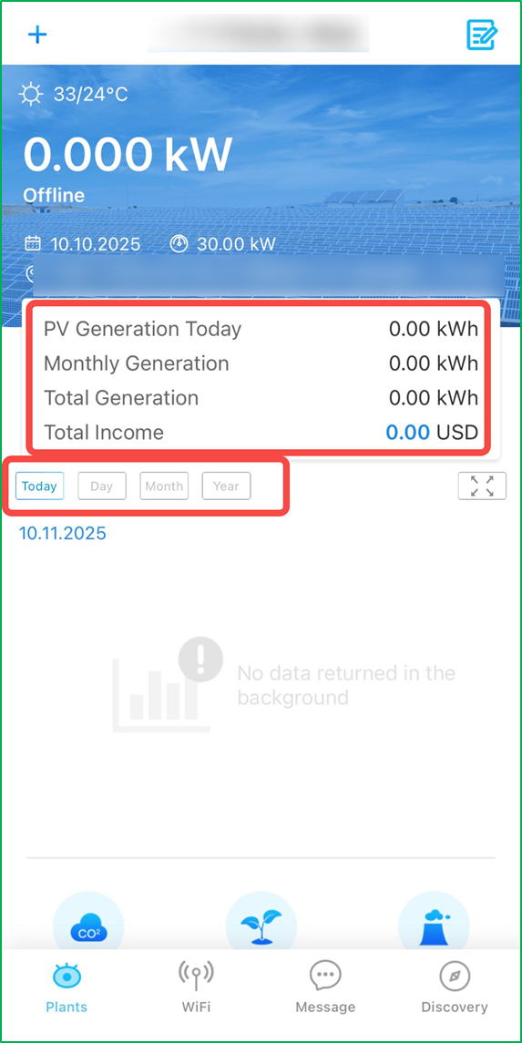 Step 1: Select “Today/ Day/ Month/ Year” on Plants page to see plant PV Generation.