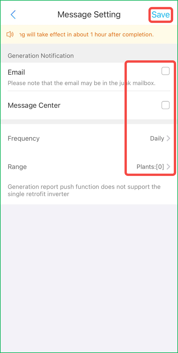 Step 2: Select Email / Message Center and choose the Frequency and Range, and then Save.